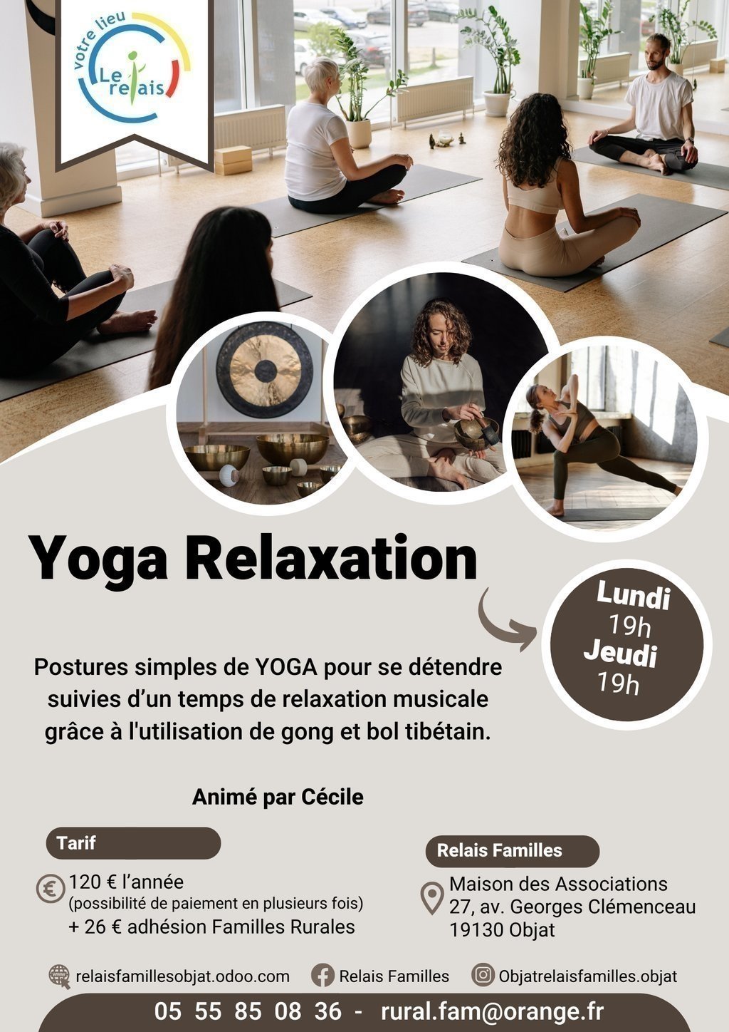 Postures simples de Yoga pour se détendre suivies d'un temps de relaxation musicale grâce à l'utilisation de gong, bol tibétain...