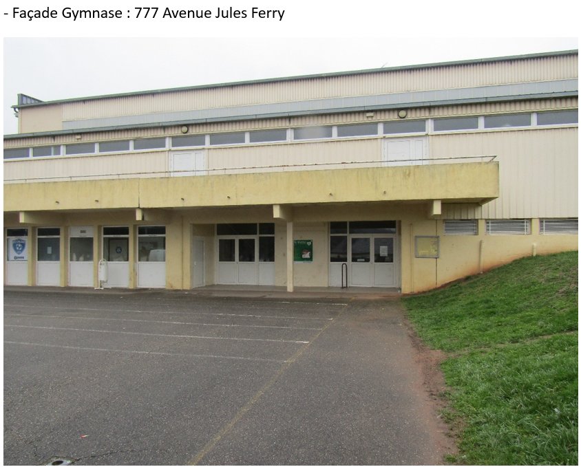 - Façade Gymnase : 777 Avenue Jules Ferry