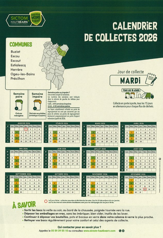 CALENDRIER DES COLLECTES 2026