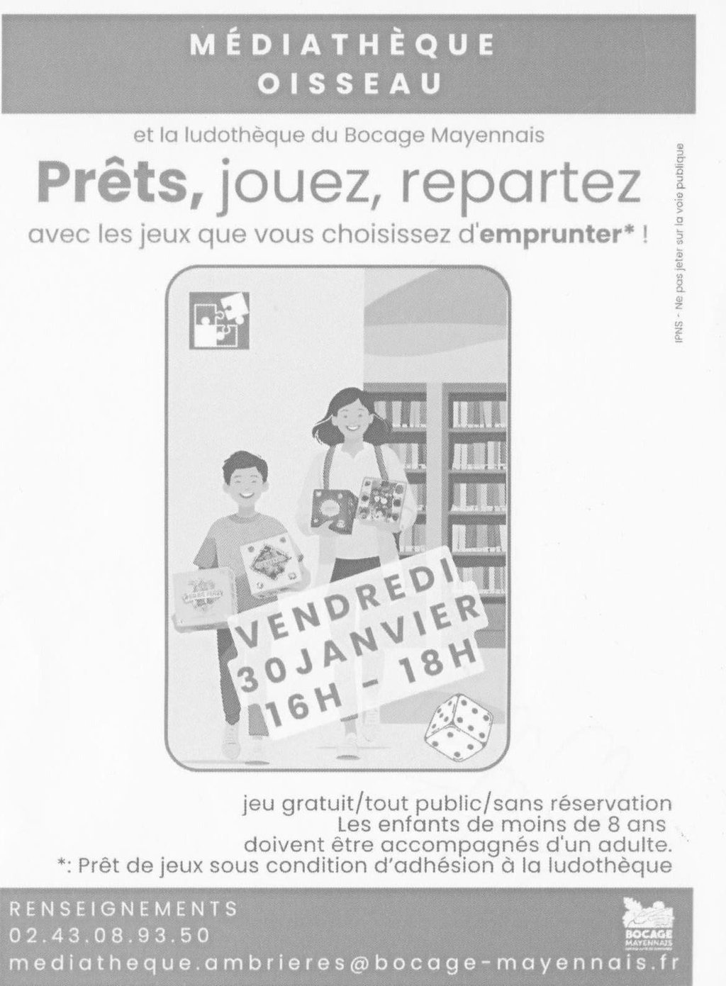 Vendredi 30 janvier 2026 de 16 h à 18 h - Jeu gratuit - Tout public - Sans réservation