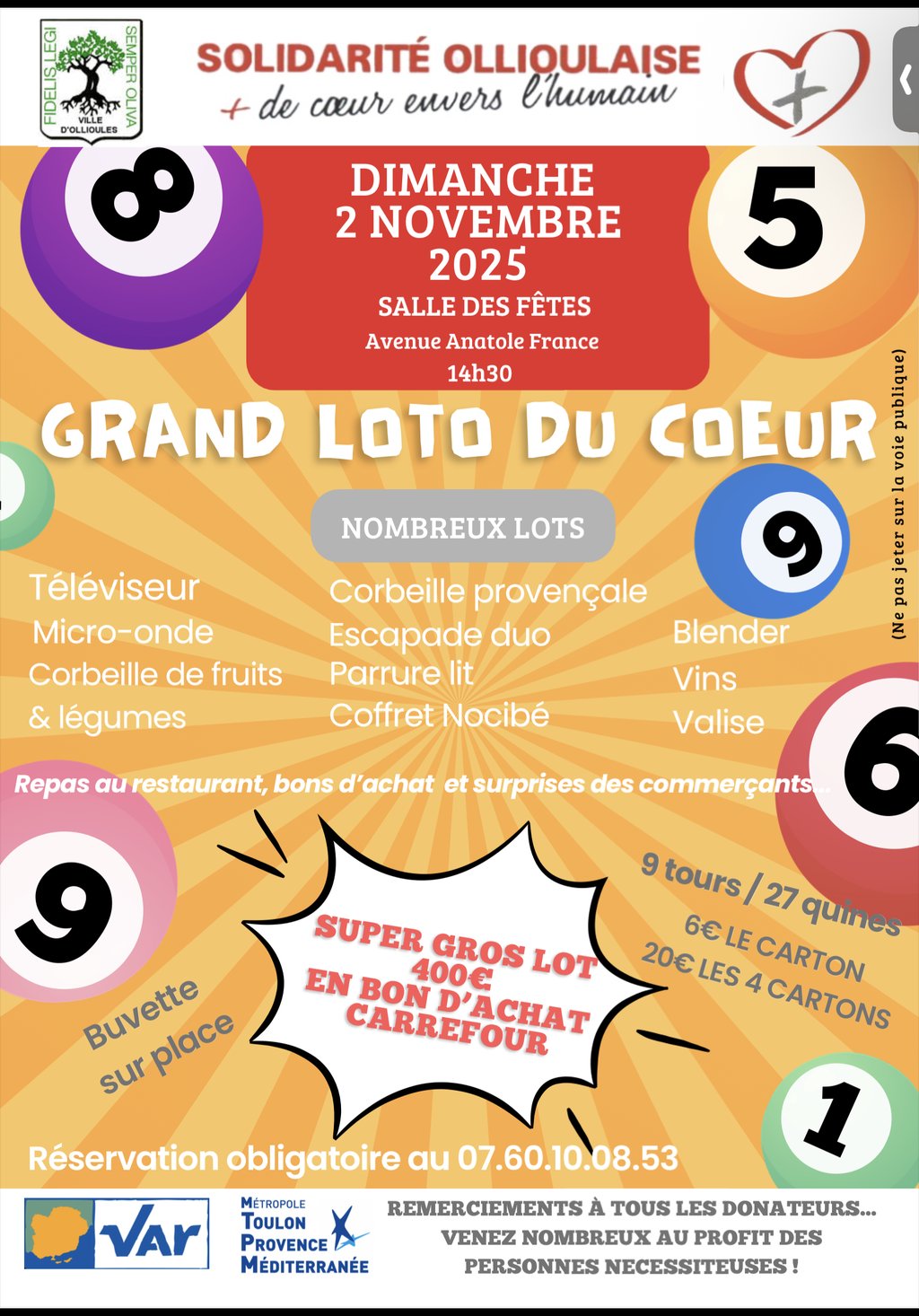 GRAND LOTO DU CŒUR – SOLIDARITÉ OLLIOULAISE
