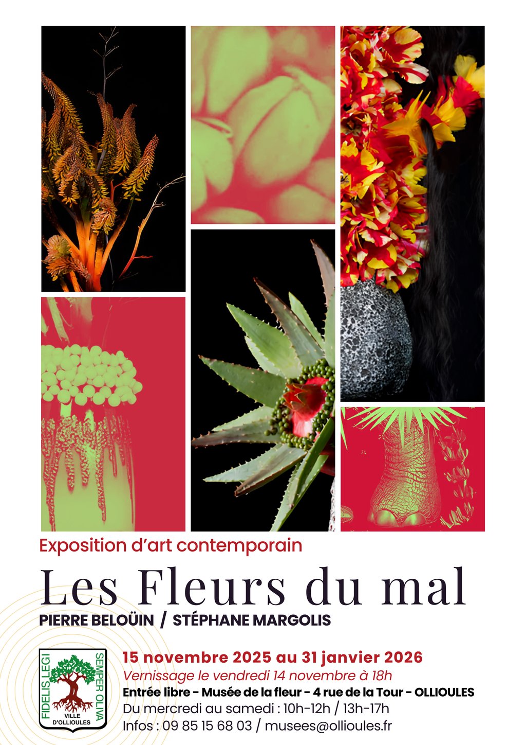Le Musée de la fleur d’Ollioules présente une exposition inédite réunissant les artistes Pierre Beloüin et Stéphane Margolis, autour d’une inspiration libre et contemporaine du recueil Les Fleurs du mal de Baudelaire.
