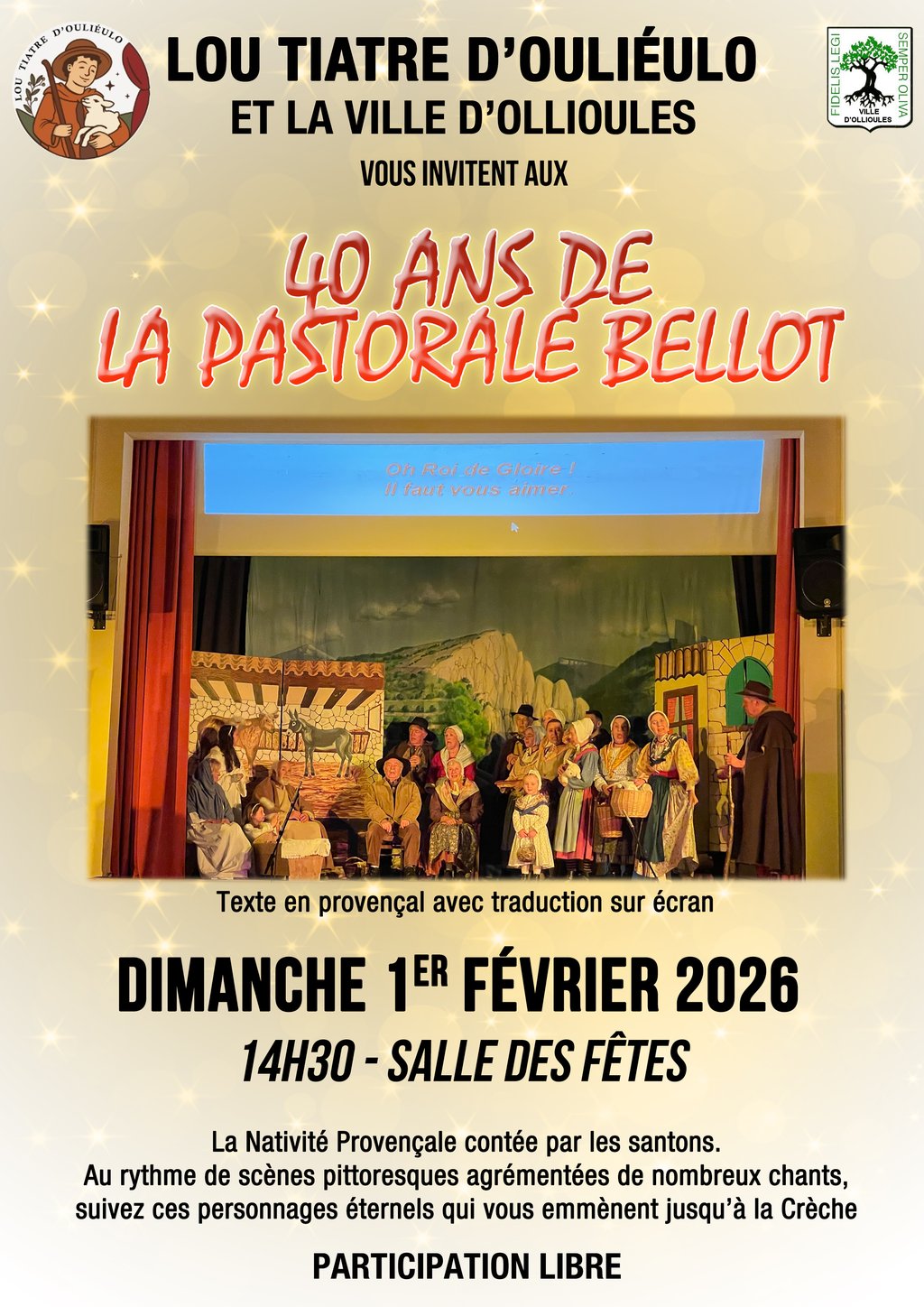 Rendez-vous dimanche 1er février à 14h30, à la salle des fêtes d’Ollioules, pour les 40 ans de la célèbre Pastorale Bellot présentée par Lou Tiatre d’Oulièulo.