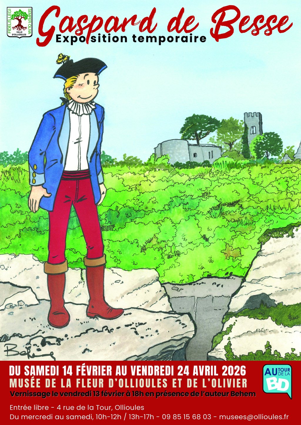 Du samedi 14 février au vendredi 24 avril 2026, cette présentation met en lumière l’histoire de Gaspard de Besse, ses mythes et son empreinte culturelle à travers des panneaux explicatifs, des planches originales, des affiches uniques. Grâce au prêt de la Médiathèque départementale du Var, l’exposition est enrichie d’un espace de découverte de la BD et de sa fabrication : La BD, c’est tout un art, c’est même le neuvième art et on vous explique tout !