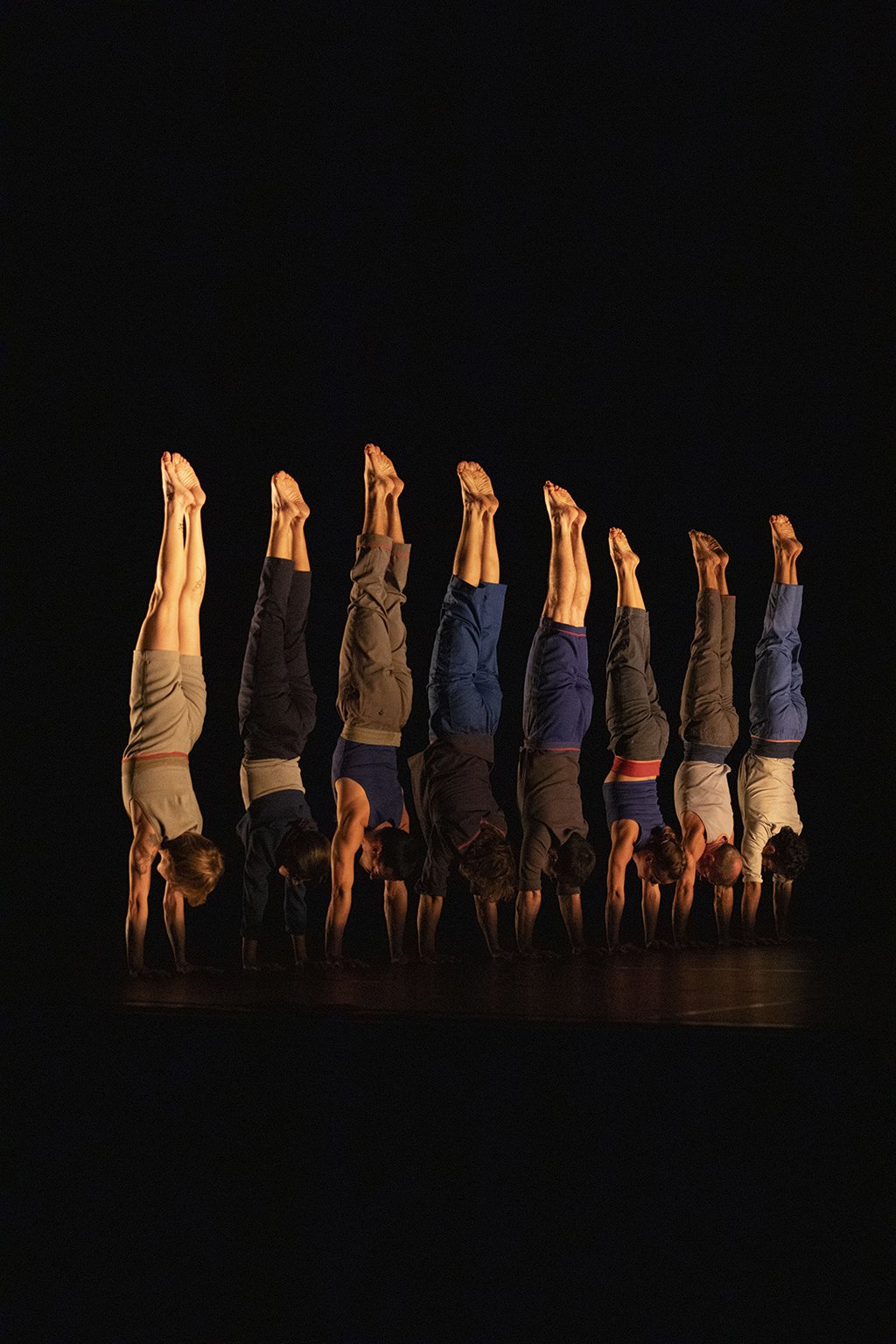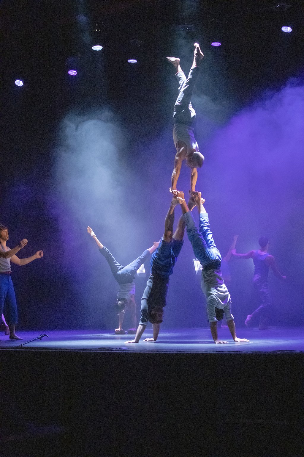 Dans cette création collective réjouissante, huit équilibristes détournent joyeusement la position bien connue du grand bipède, synonyme de fuite, en un ballet tout en verticalité. Ils illustrent l’expression populaire « faire l’autruche » non pas pour se couper du monde mais peut-être pour le voir autrement et y éprouver différemment leur place. Au fil de la pièce, les acrobates vont nous étourdir en effectuant une multitude de figures qui s’enchaînent à vive allure dans une osmose parfaite avec, entre autres exploits, 417 équilibres en 7 minutes, 7 minutes sans équilibre et 1 équilibre qui dure 7 minutes.