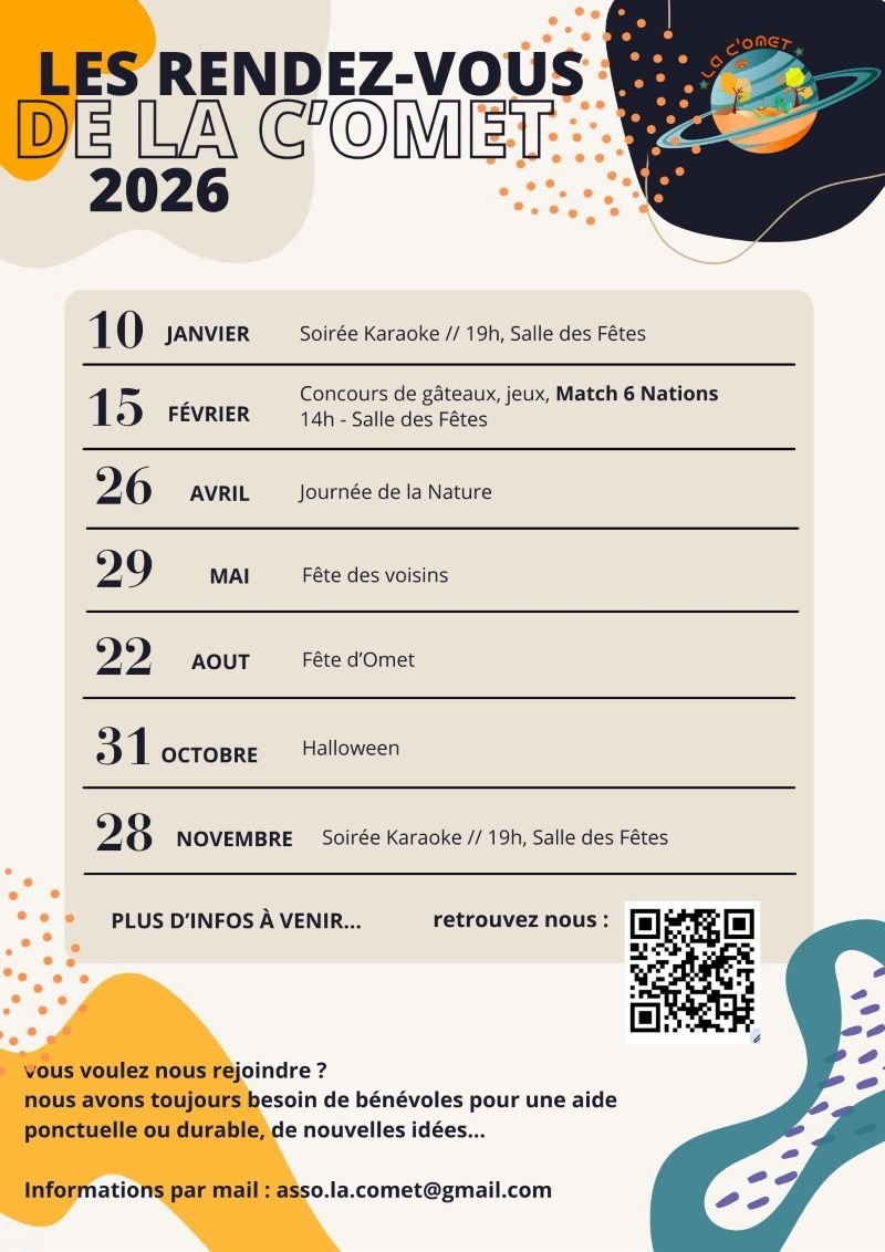 LA C'OMET vous présente les rendez-vous qu'elle vous propose, dès à présent, pour l'année 2026.