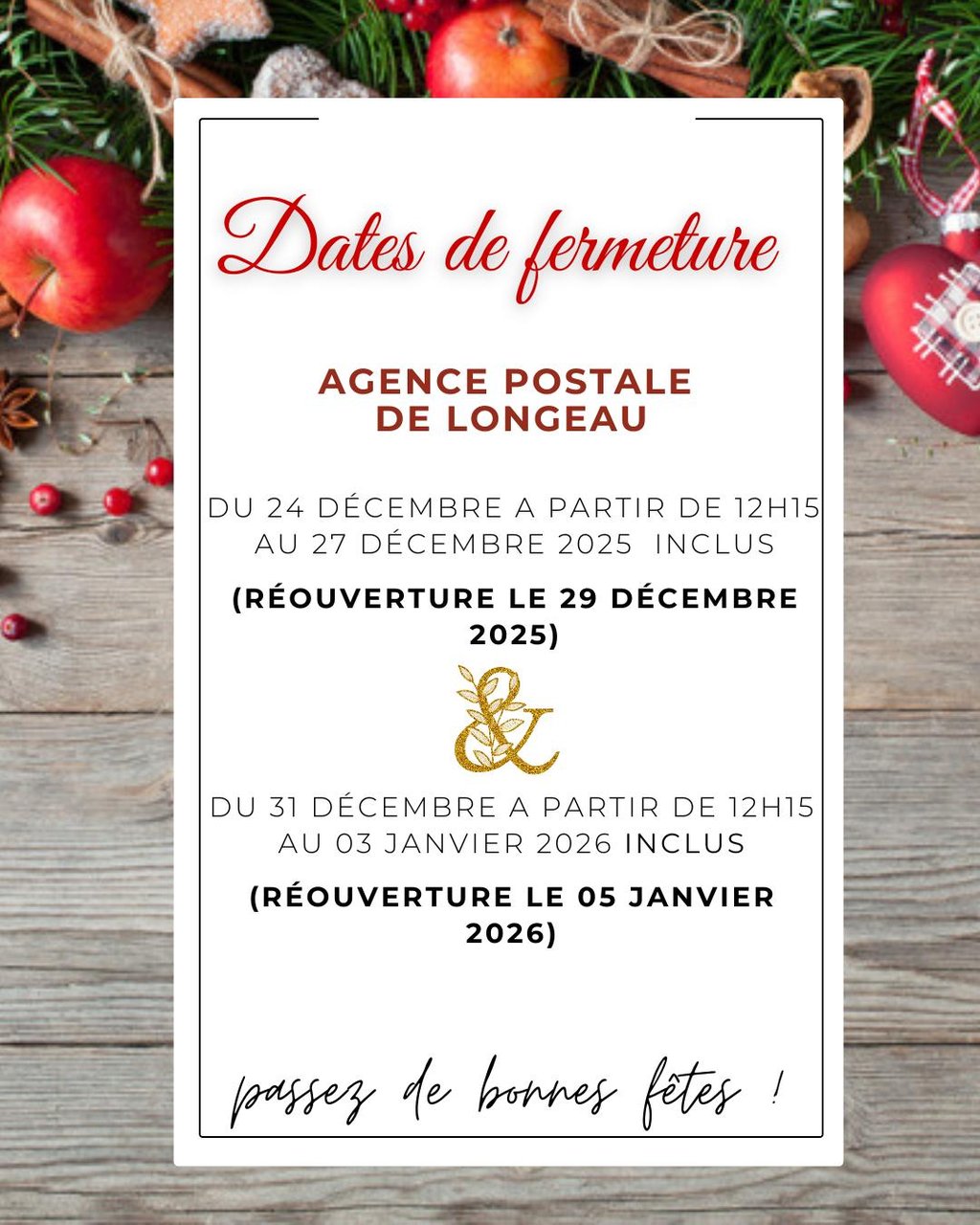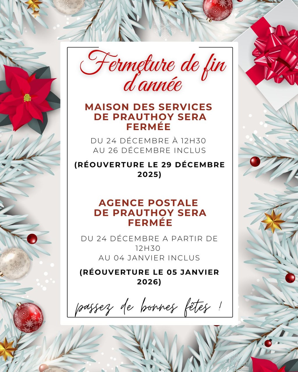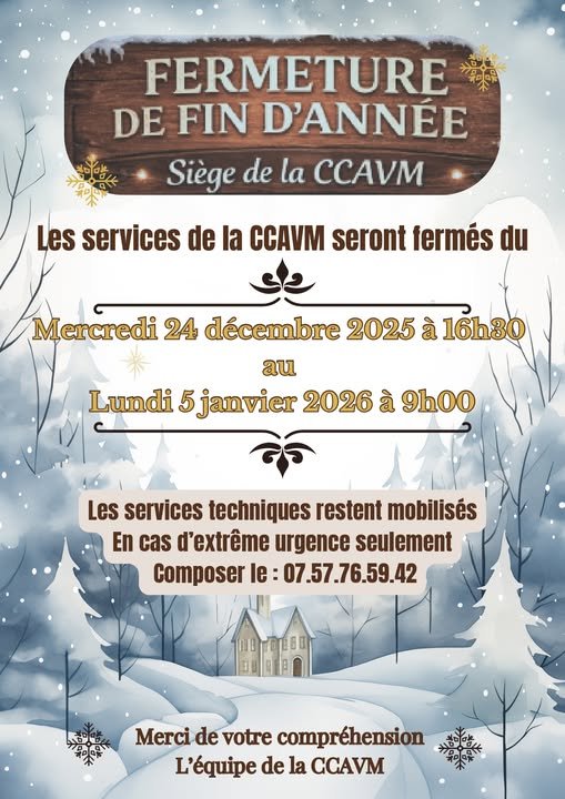 🔔 RAPPEL – FERMETURES PENDANT LES VACANCES