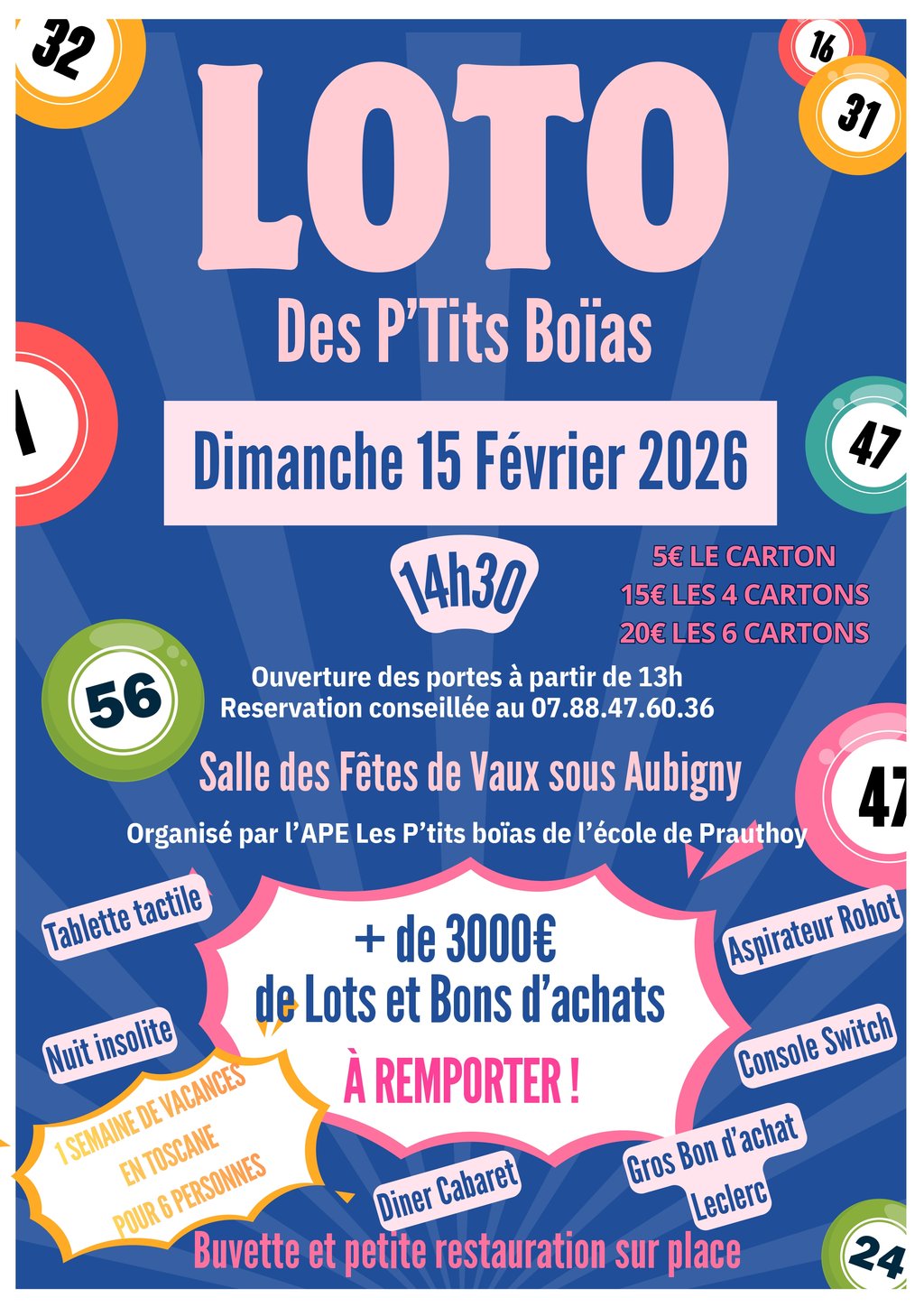 ✨EVÉNEMENT À NE PAS MANQUER 📢🎉 LOTO DES P’TITS BOÏAS – DIMANCHE 15 FÉVRIER À VAUX-SOUS-AUBIGNY 🎉