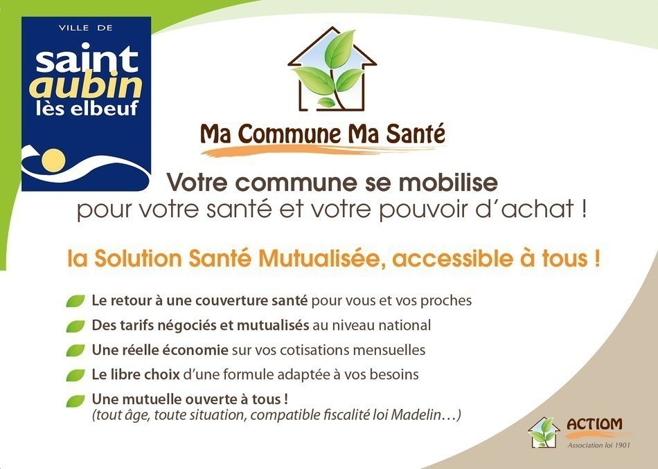 La Ville de Saint-Aubin-lès-Elbeuf et son CCAS ont signé un partenariat avec l'association ACTIOM afin de permettre aux Saint-Aubinois de profiter du dispositif "Ma Commune Ma Santé".