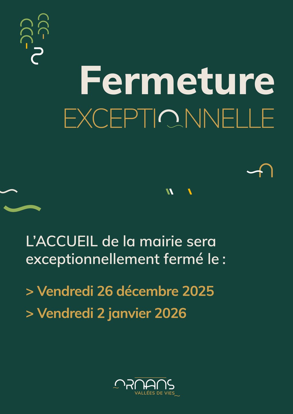 L'accueil de la mairie d'Ornans sera exceptionnellement fermé les :