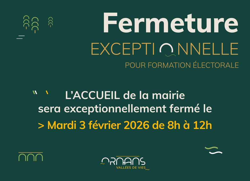 L'accueil de la mairie sera exceptionnellement fermé pour formation électorale le :