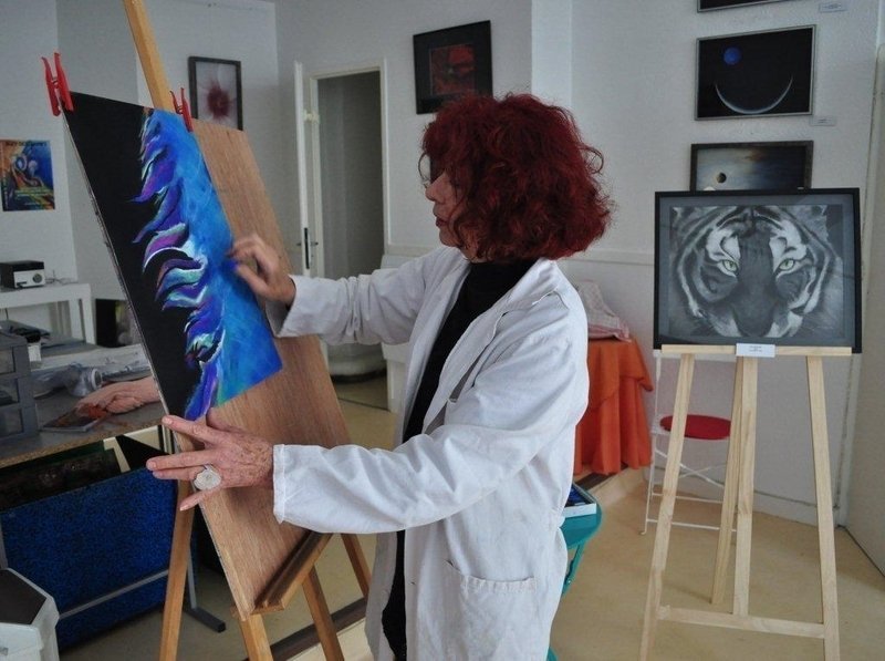 Le secret du pastel, c'est la magie des pigments, c'est le toucher du bout des doigts, contact très sensuel avec la matière, jaillissement des couleurs qui, entre rêves et réalité, me transportent dans un univers symphonique de couleurs.