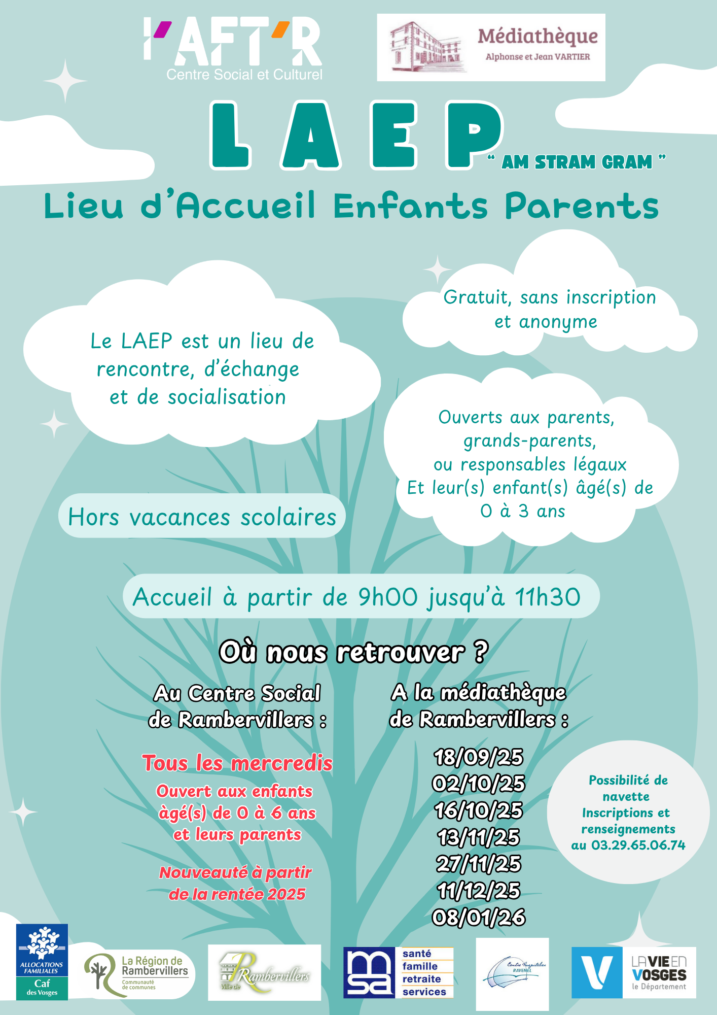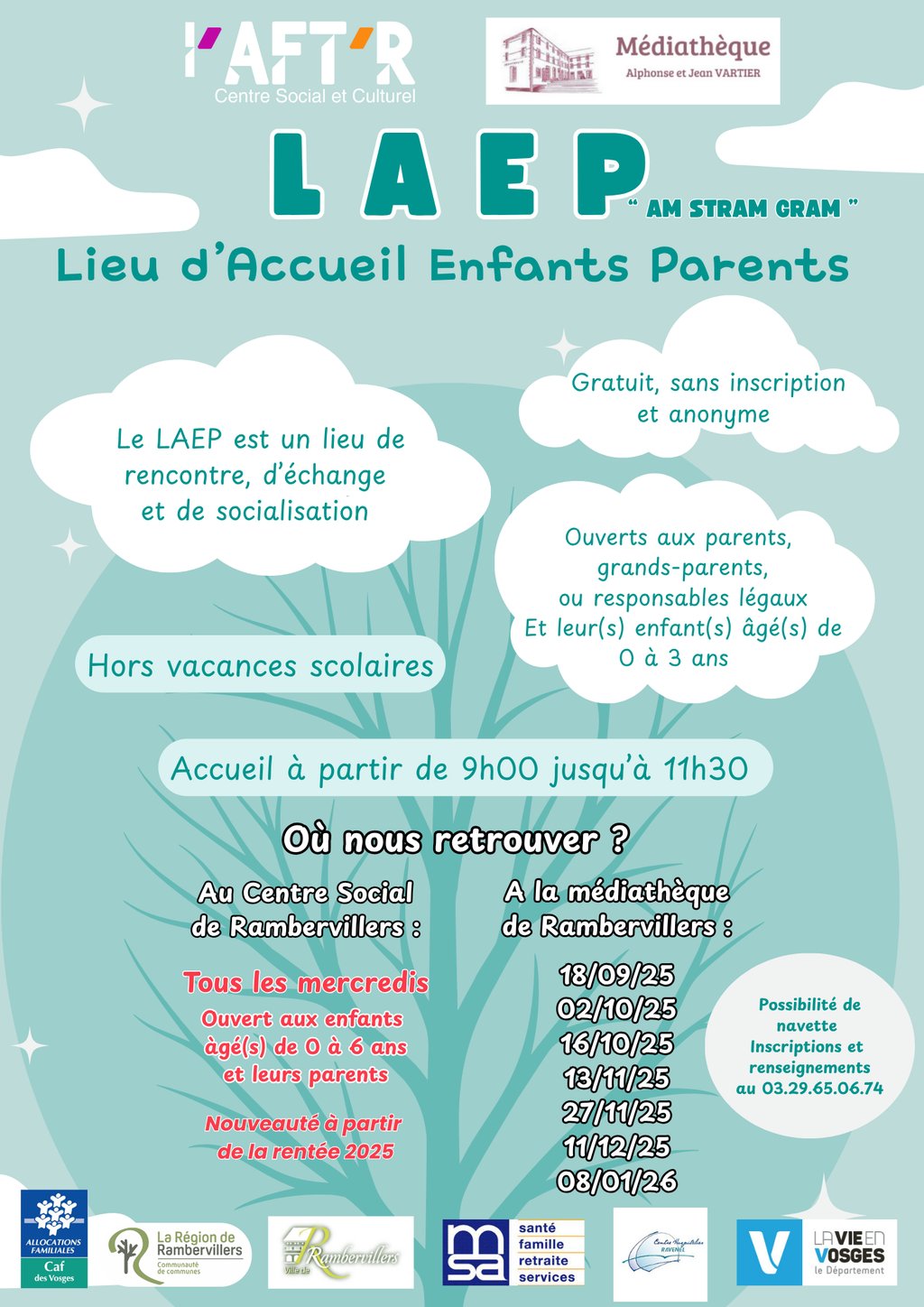 Nous vous informons de l’ouverture d’un nouveau créneau du Lieu d’Accueil Enfants-Parents (LAEP) "Am Stram Gram" à Rambervillers :