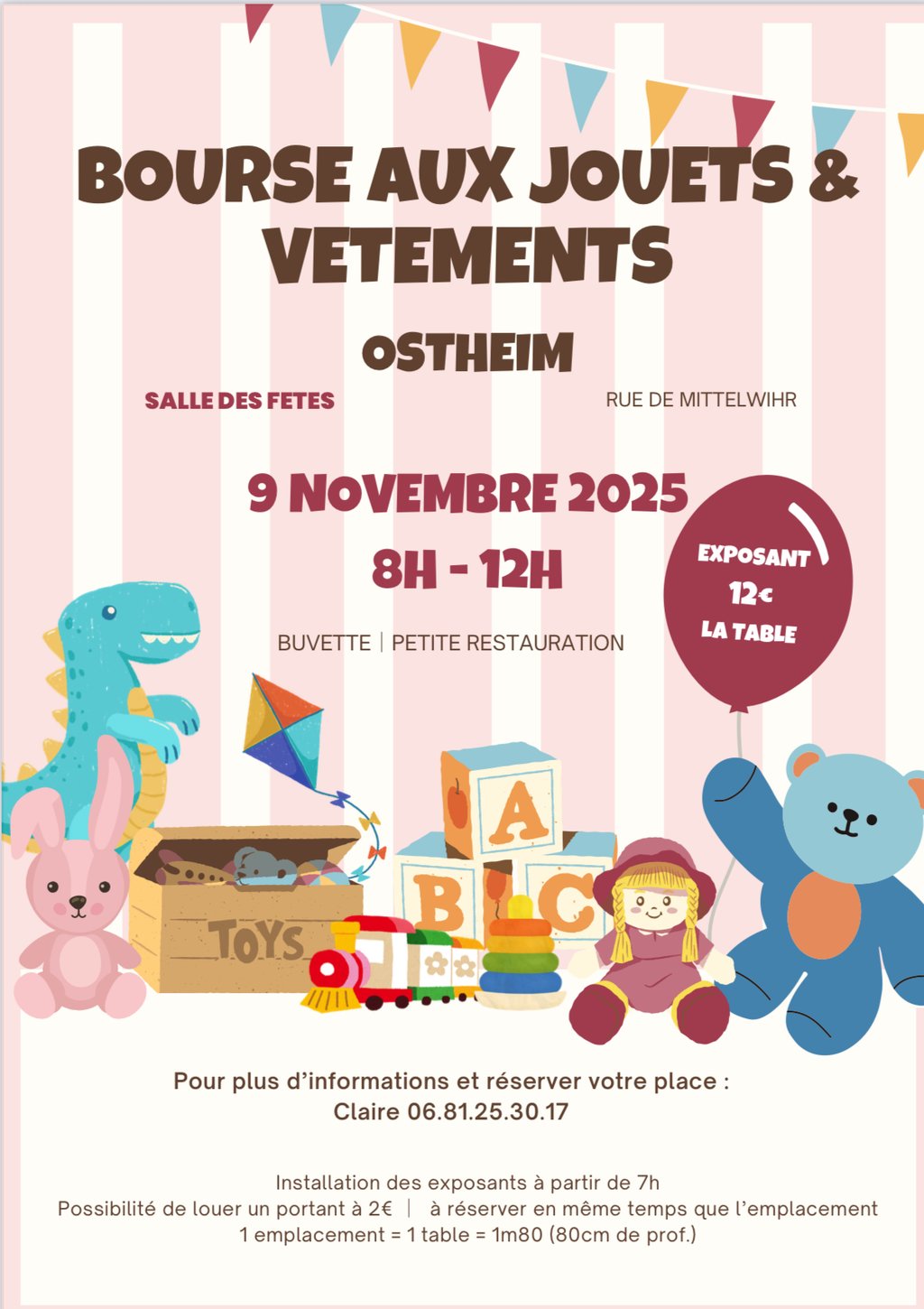 L'association "Les Cigogneaux" organise sa traditionnelle bourse aux jouets et vêtements d'enfants le 9 novembre prochain de 8 à 12H.