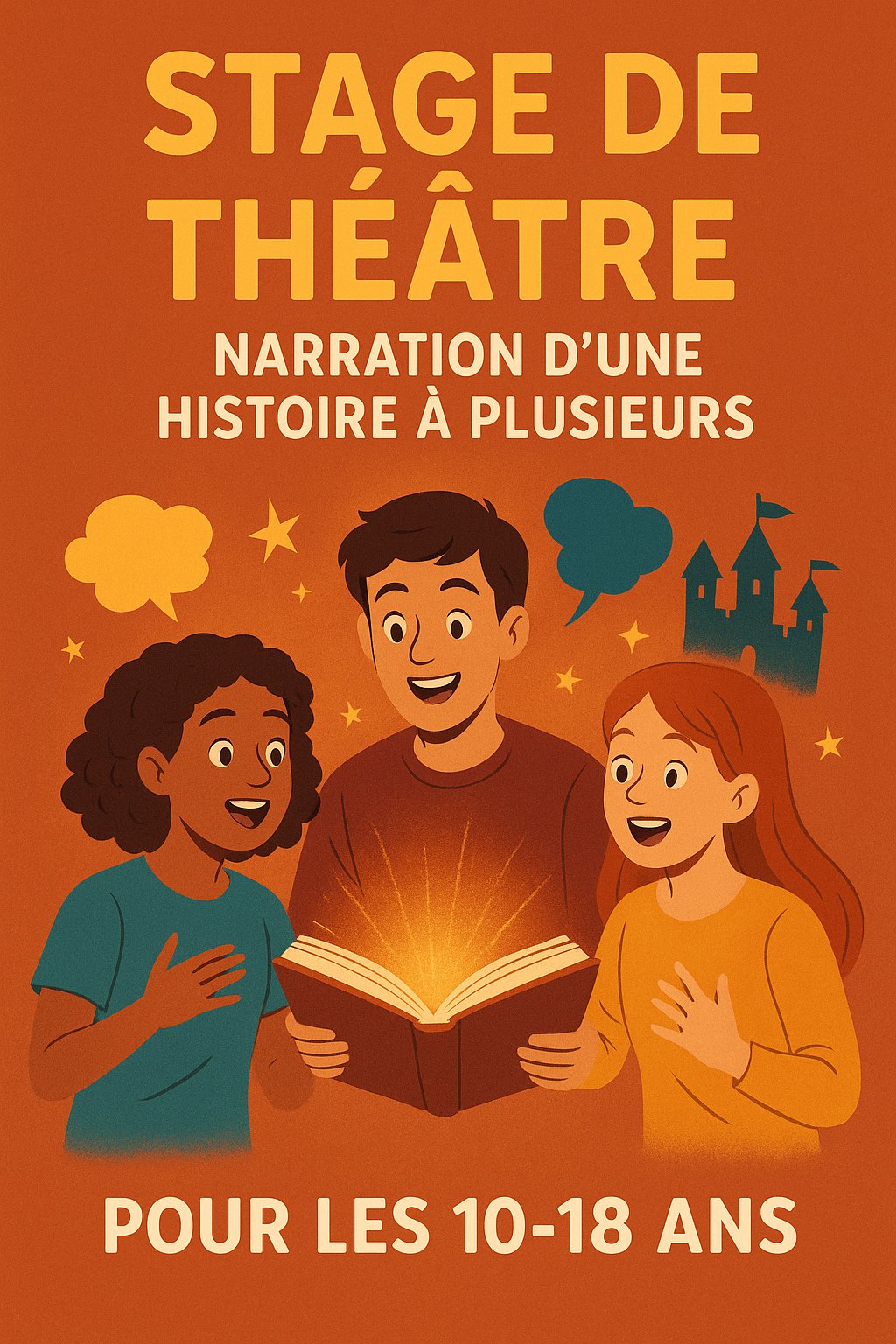 Stage d'automne de 4 demi-journées pendant les vacances scolaires. Travail autour du conte et des techniques théâtrales pour raconter une histoire en scène à plusieurs. Un moment d'apprentissage et de jeu qui se termine par une présentation publique du travail réalisé. Ouvert aux jeunes à partir de 10 ans. Animé par Catherine Guinel.