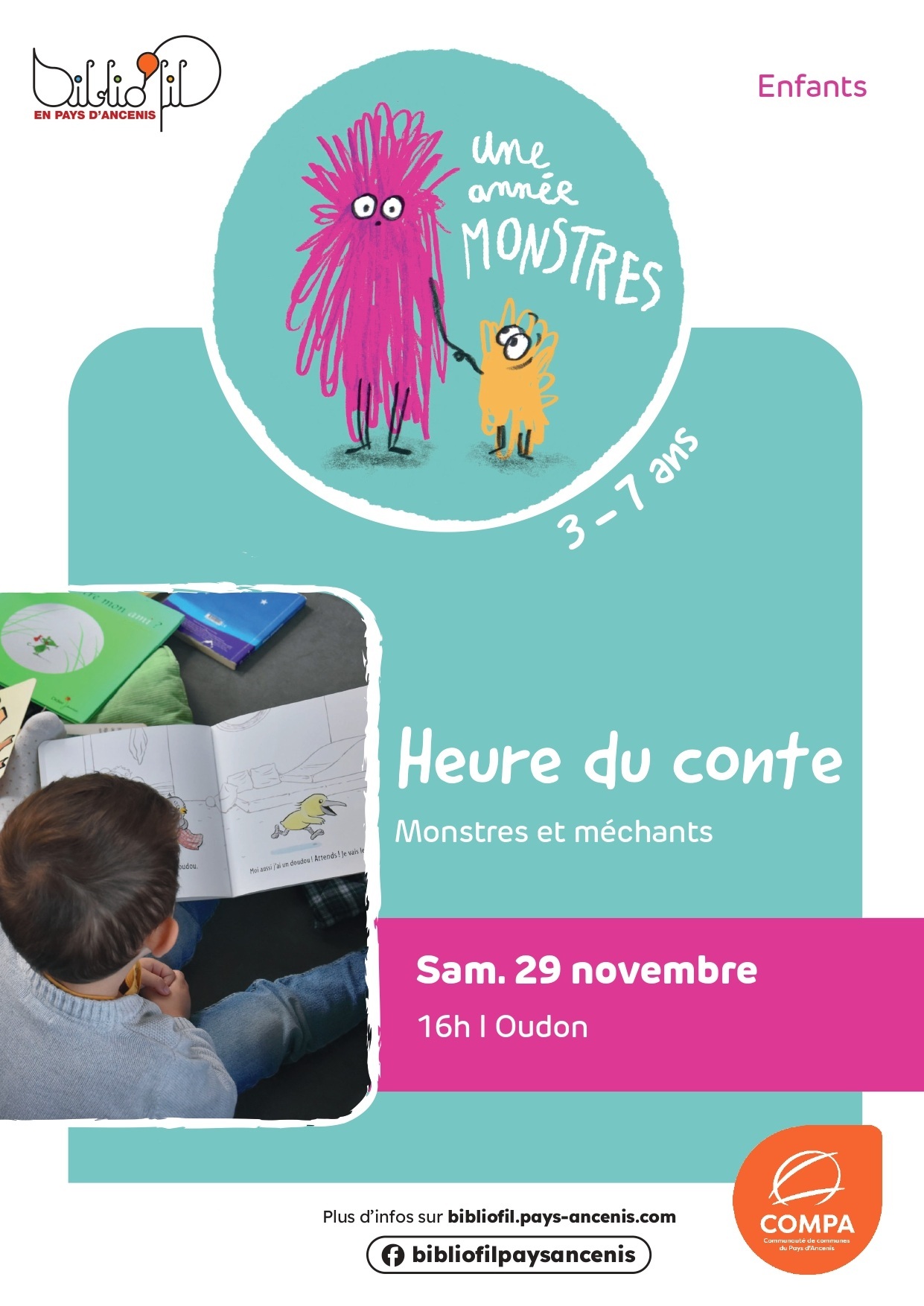 A l'occasion du Marché de Noël d'Oudon, retrouvez à 16h le quatuor des Raconteuses de la bibliothèque, pour une heure du conte autour des Monstres et des Méchants, fil rouge de l'année du réseau Biblio'fil!