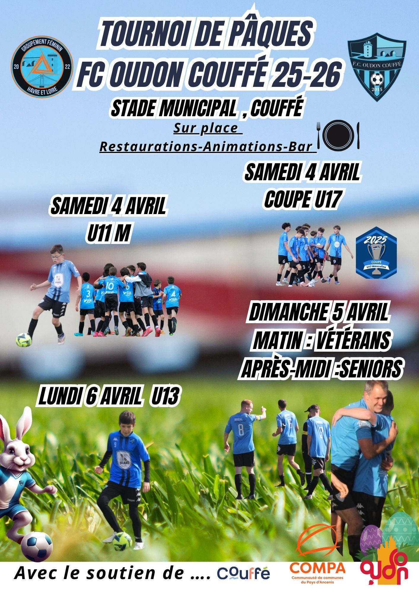 Le Football Club Oudon Couffé organise 3 journées de football durant le week-end de Pâques. L'événement est déplacé au stade de COUFFÉ :