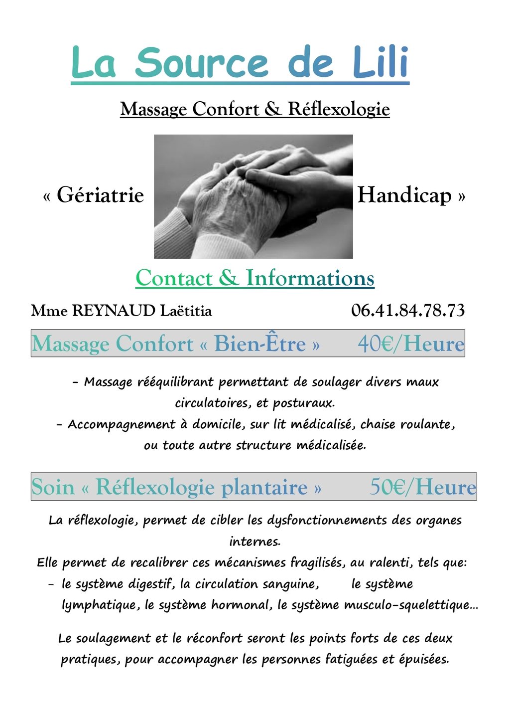 MASSAGE CONFORT ET RÉFLEXOLOGIE "GÉRIATRIE ET HANDICAP"
