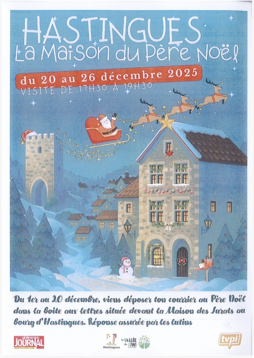 La maison des Jurats qui s'est transformée en maison magique de Noël et la boîte à lettres du Pêre Noël qui est prête à accueillir toutes les lettres des enfants