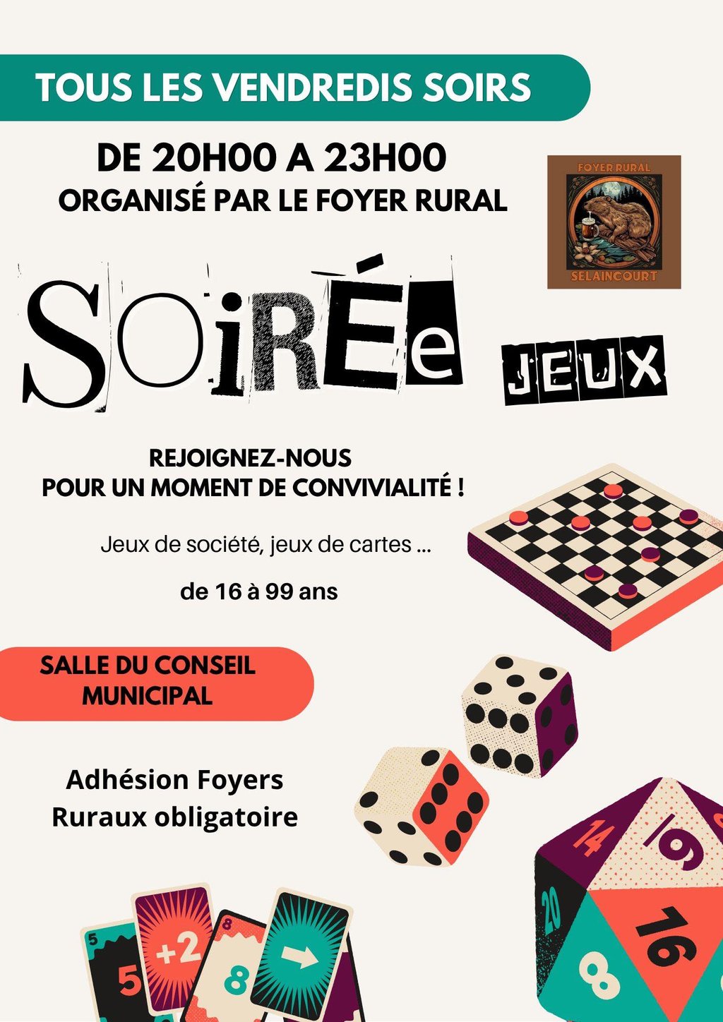 Rendez-vous chaque vendredi soir à la salle du conseil municipal pour une soirée jeux !