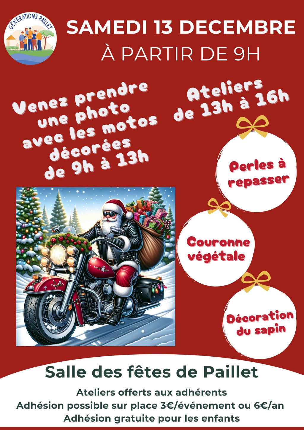 Pères Noël motards et ateliers de Noël de l’association Générations Paillet