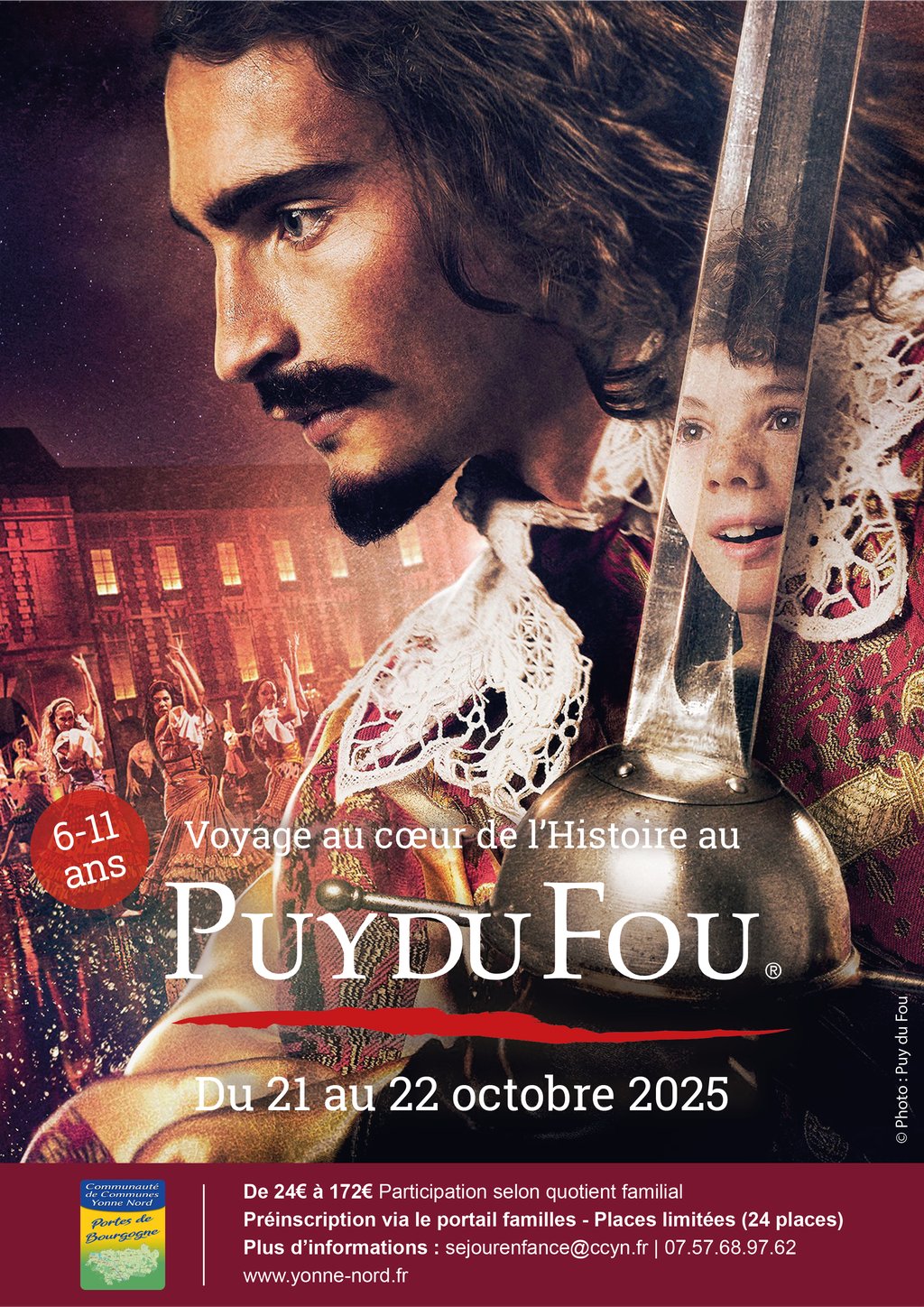 Du 21 au 22 octobre 2025, le service enfance embarque les enfants de 6 à 11 ans pour un mini-séjour inoubliable au Puy du Fou.