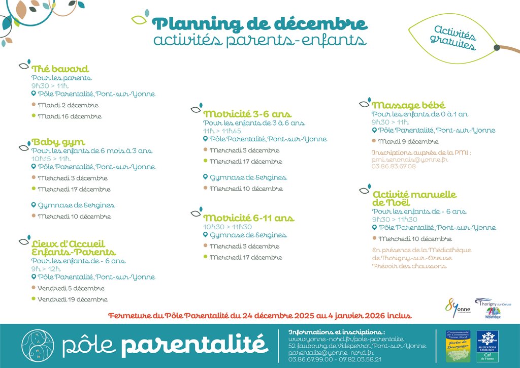 PÔLE PARENTALITÉ - ACTIVITÉS DE DÉCEMBRE
