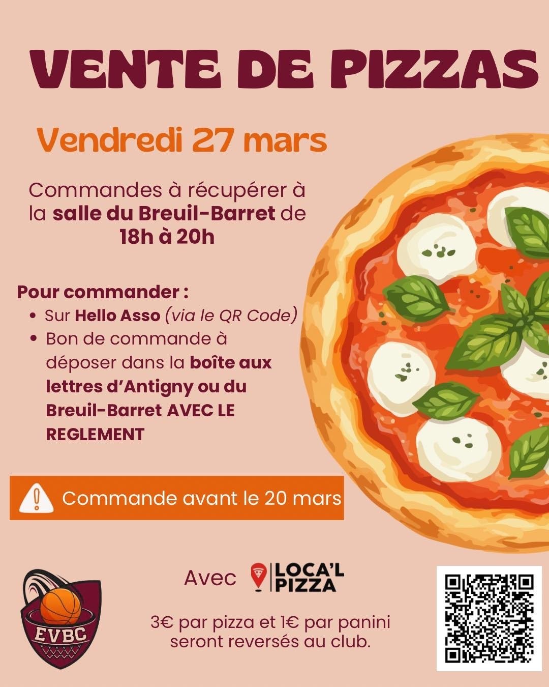 Envie dâune bonne pizza tout en soutenant le club de basket lâEVBC? đ
