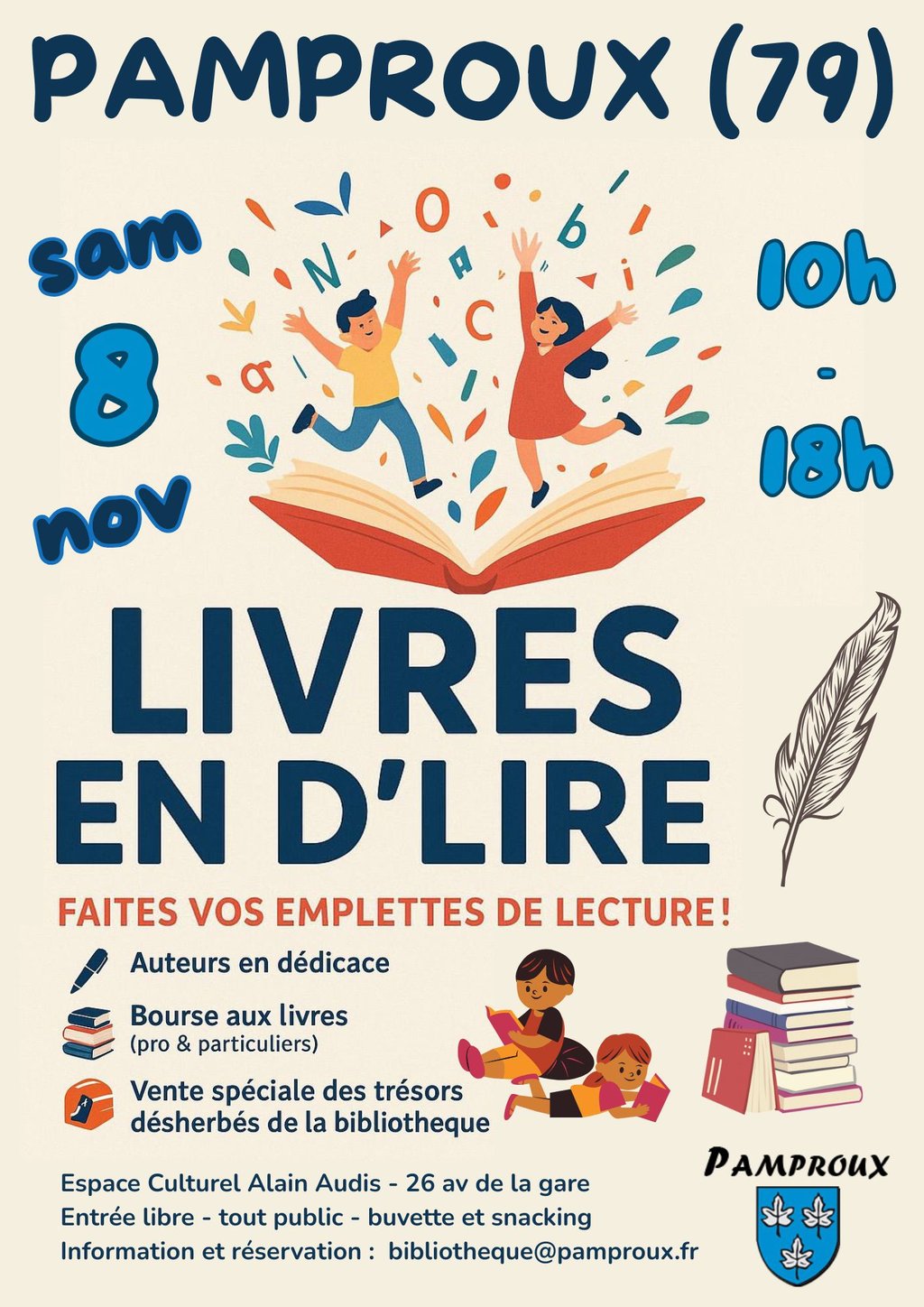 Contactez la bibliothèque de Pamproux (pendant les heures d’ouverture au 05.49.76.31.23 ou par mail tout le reste du temps à bibliotheque@pamproux.fr) pour participer à cette belle journée autour du livre.