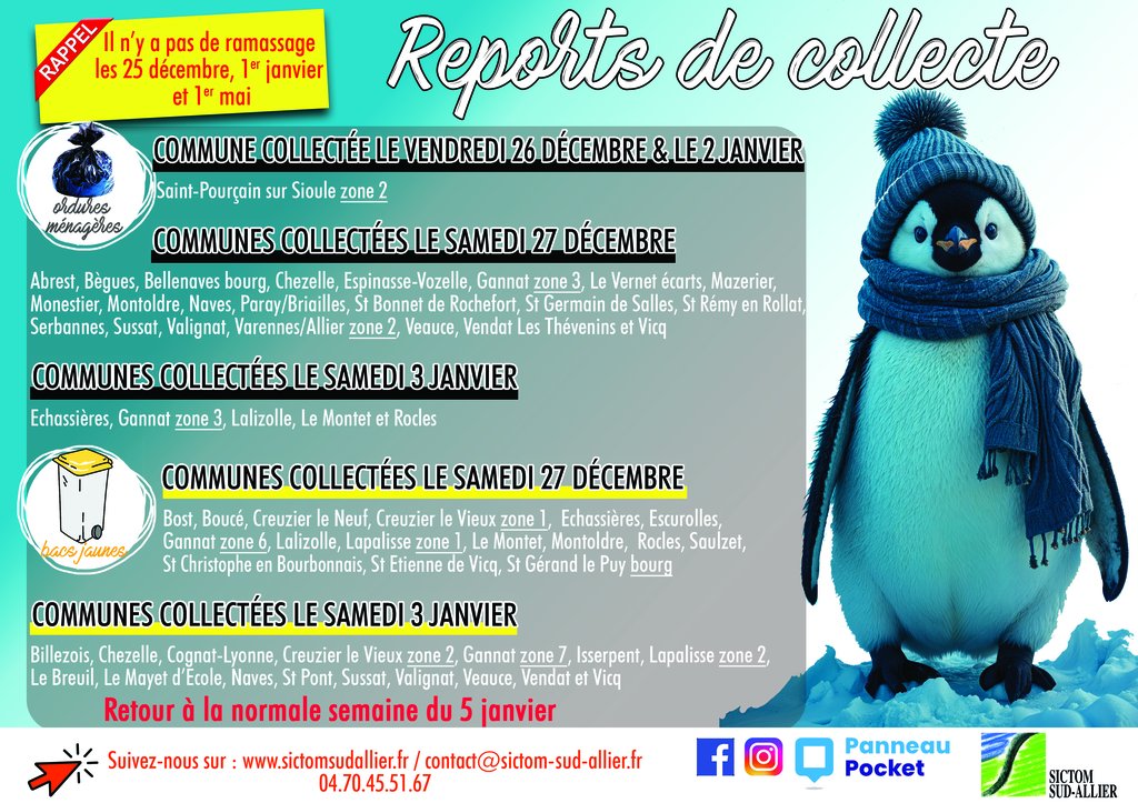 Les ordures ménagères de la commune de Paray-sous-Briailles seront collectées SAMEDI 27 DECEMBRE 2025.