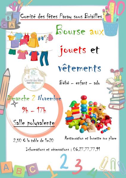 Le Comité des fêtes de Paray-sous-Briailles organise sa grande bourse : Jouets et vêtements (bébé, enfant, ado).