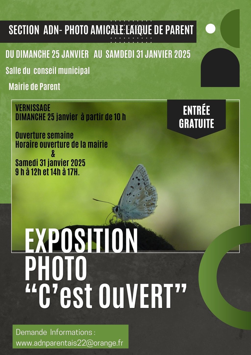 A partir de ce dimanche 10 h, venez découvrir l'exposition photo "C'est OuVERT" proposée par la section ADN de l'amicale laïque.