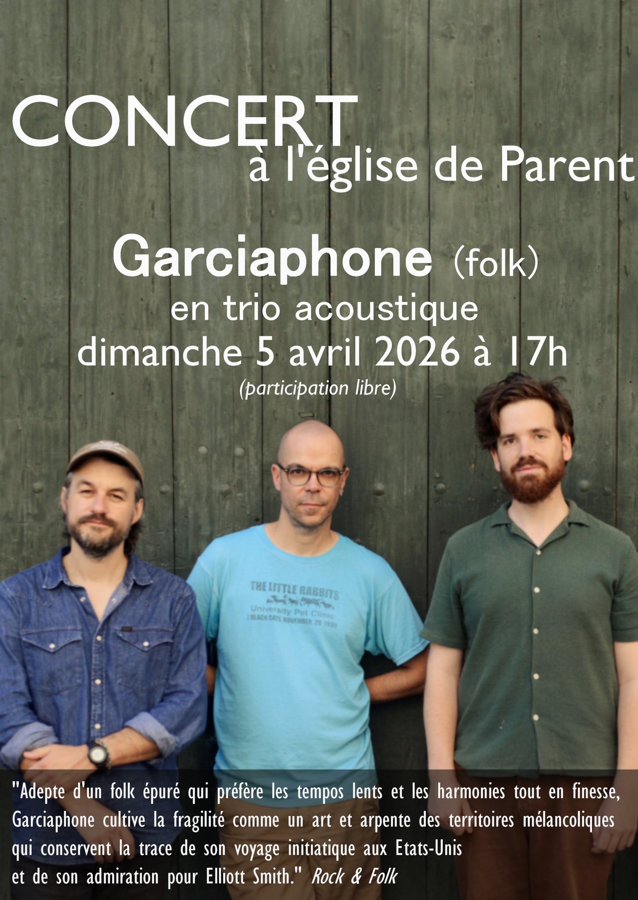 Après de nombreux concerts, partout en France et à l'étranger, après son passage à Europavox en 2025, Garciaphone nous fait l'honneur de se produire en version acoustique à l'église de Parent !
