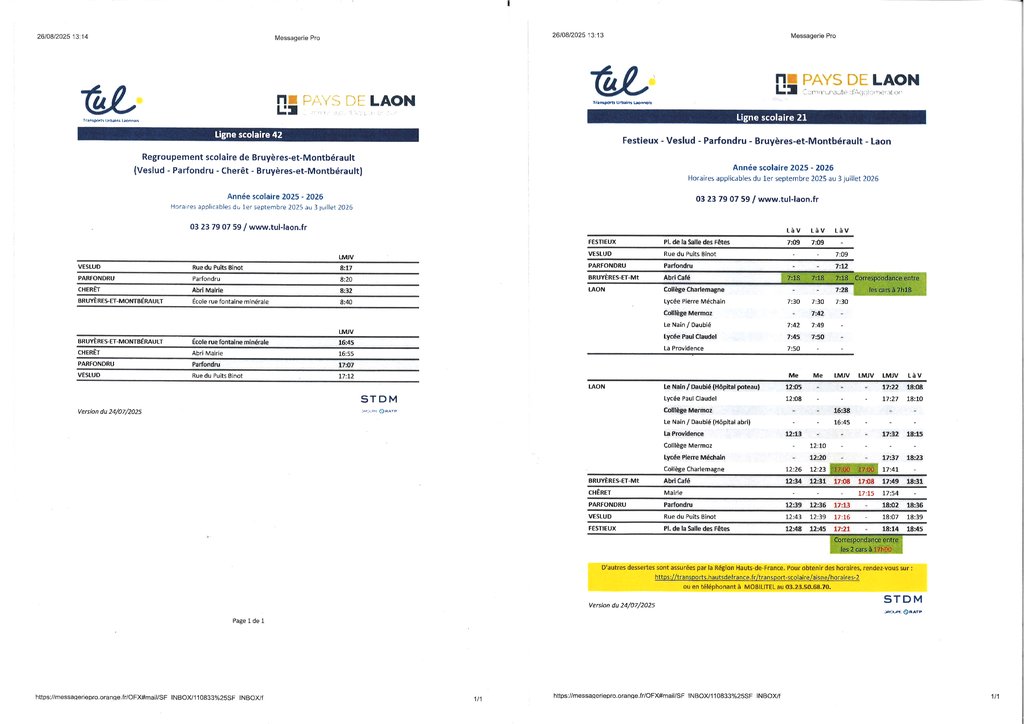 TUL - HORAIRES ANNÉE SCOLAIRE 2025 - 2026