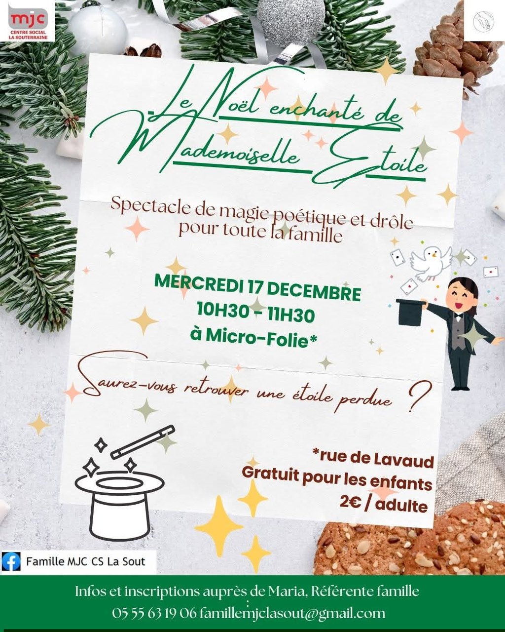 Infos et inscriptions auprès de Maria, référente famille 05 55 63 19 06 - famillemjclasout@gmail.com