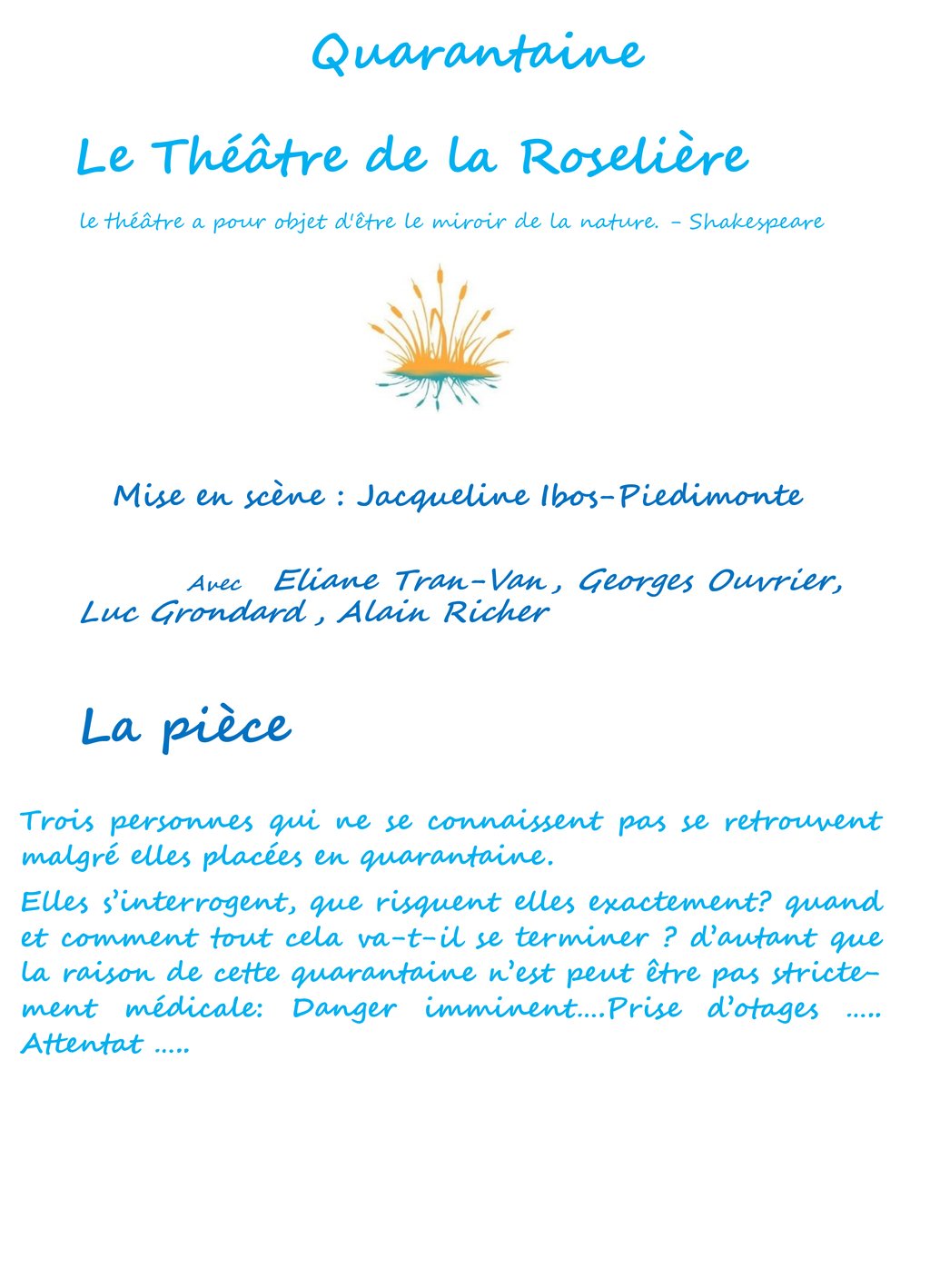 Pas de réservations, entrée libre, représentation au chapeau.