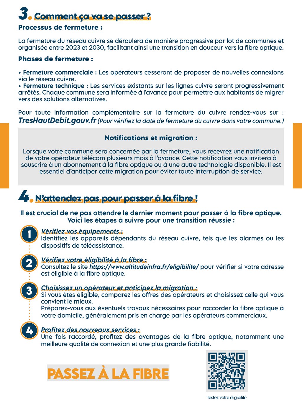 La date de fermeture commerciale du cuivre est prévue pour le 31/01/2026 et la date technique aura lieu entre 2026-2030. « Pas de date précise pour le moment ».