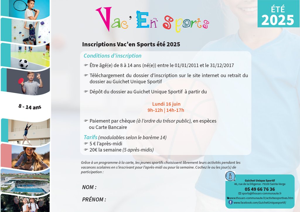Offrez-lui un été inoubliable avec Vac’en Sports : des après-midis sportifs et ludiques tout au long des vacances d’été à Thouars et alentours !