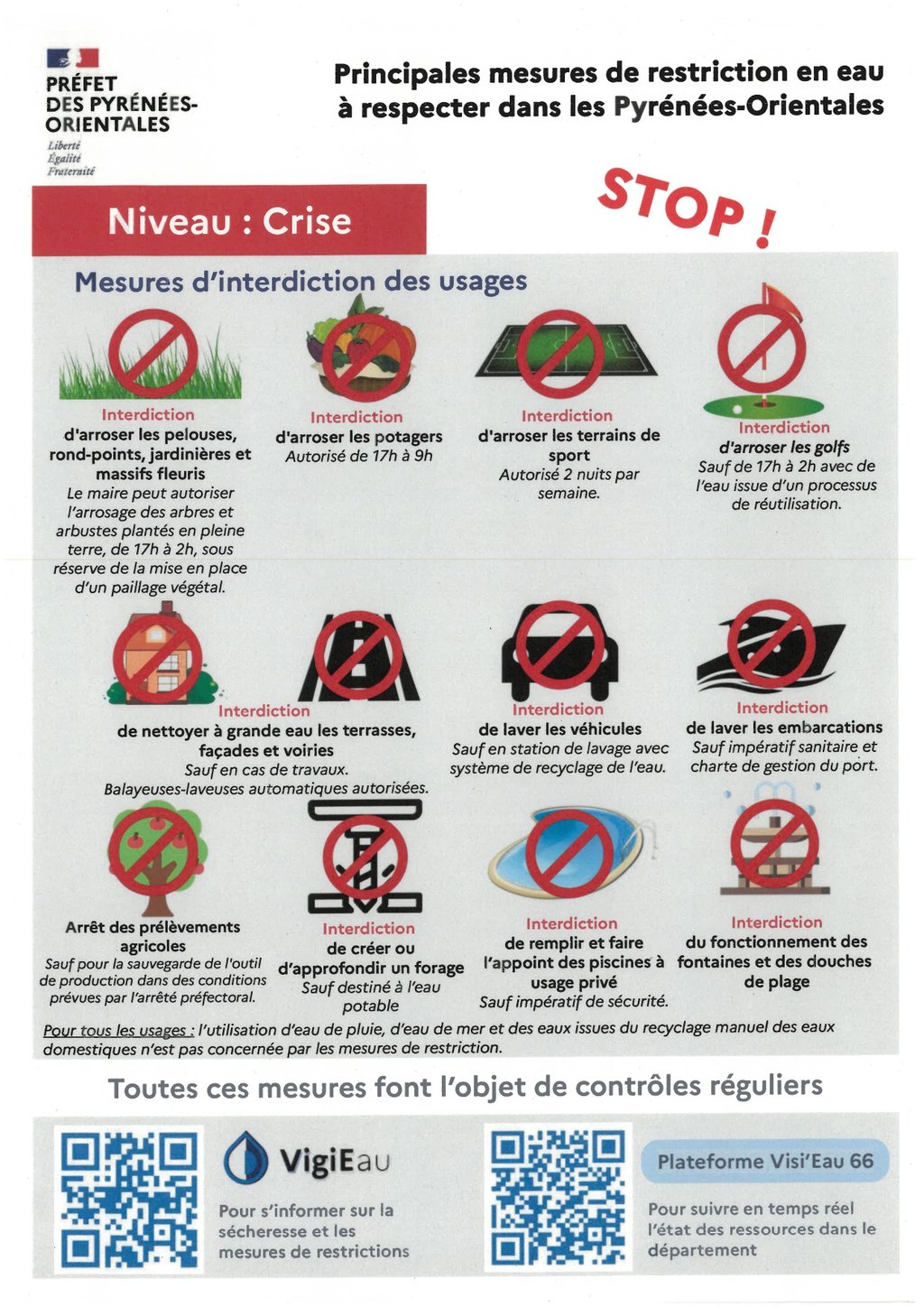 Ces mesures sont essentielles pour préserver nos ressources en eau. Pour plus d'informations, consultez les plateformes VigiEau et Visi'Eau 66.