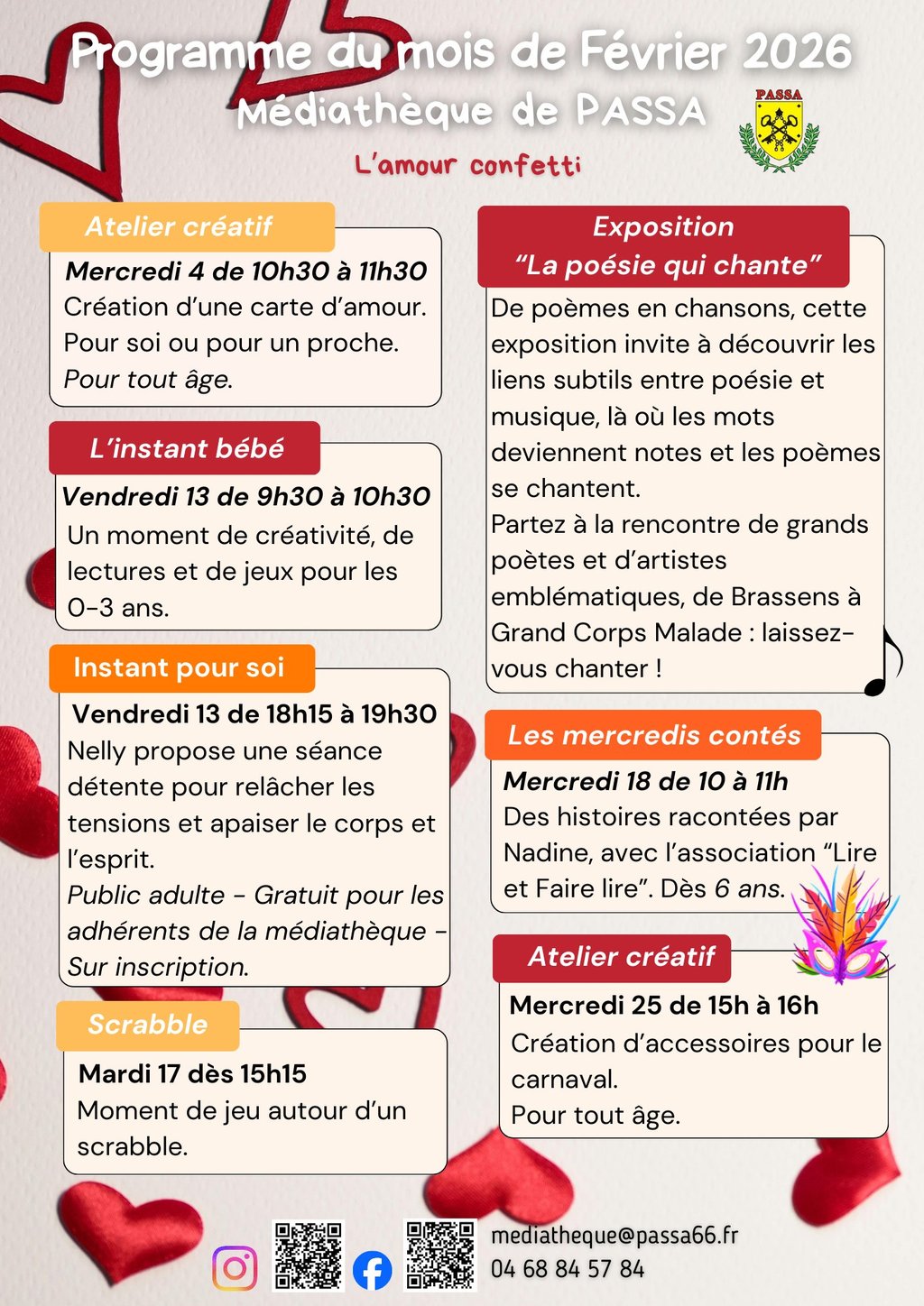 Découvrez le programme de la médiathèque pour le mois de février 2026 en consultant le document ci-joint.