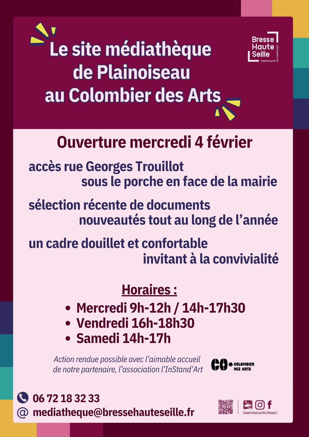 MÉDIATHÈQUE : OUVERTURE DU SITE PROVISOIRE DE PLAINOISEAU AU COLOMBIER DES ARTS