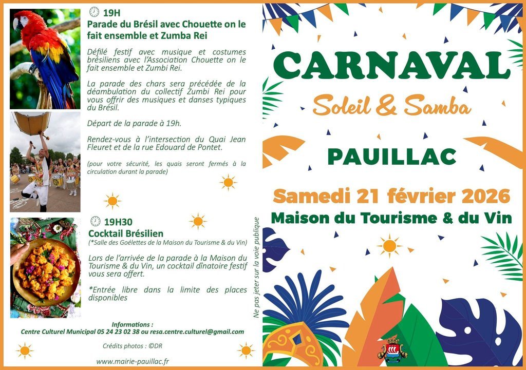 Pauillac fête le Carnaval sur le thème Soleil & Samba, avec un programme riche et varié :