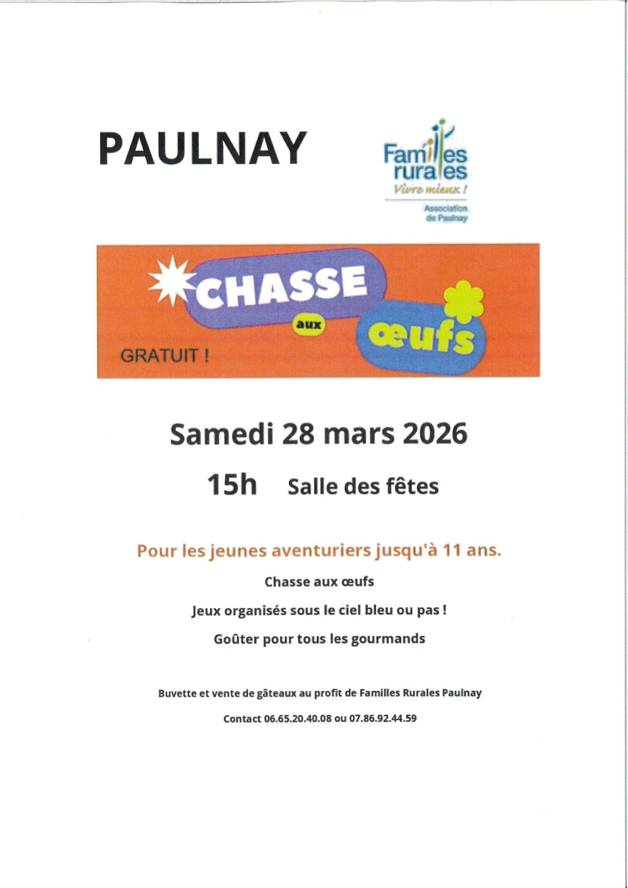 đ Chasse aux Ćufs Ă Paulnay le samedi 28 mars 2026, gratuit đ