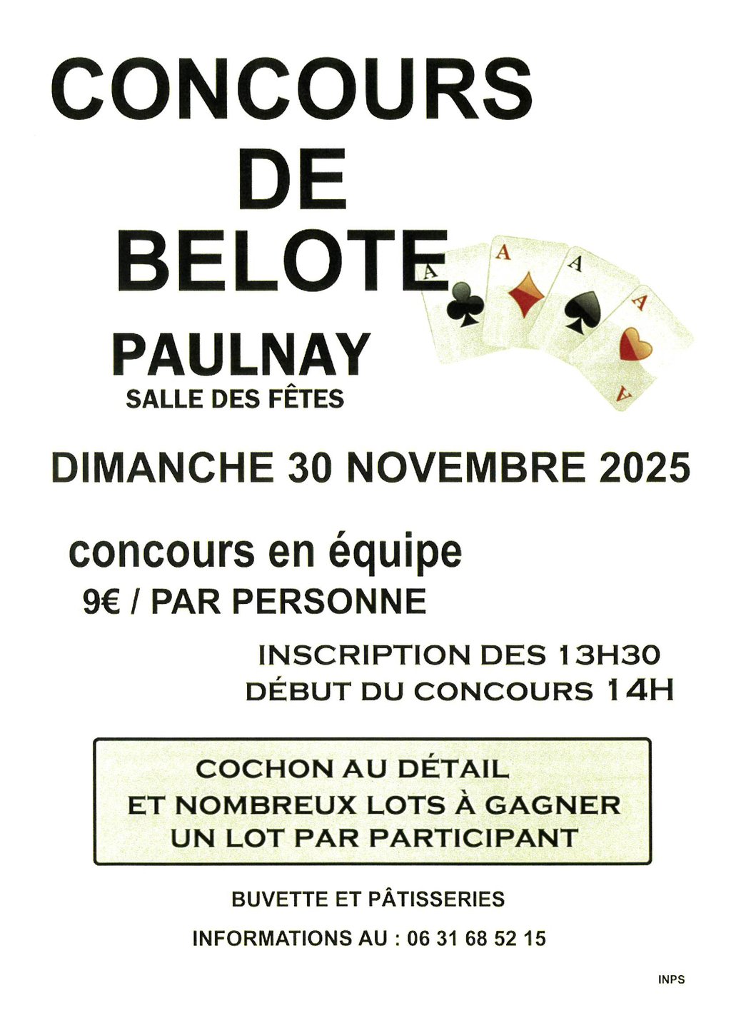 Concours de belote à la salle des fêtes le dimanche 30 novembre 2025