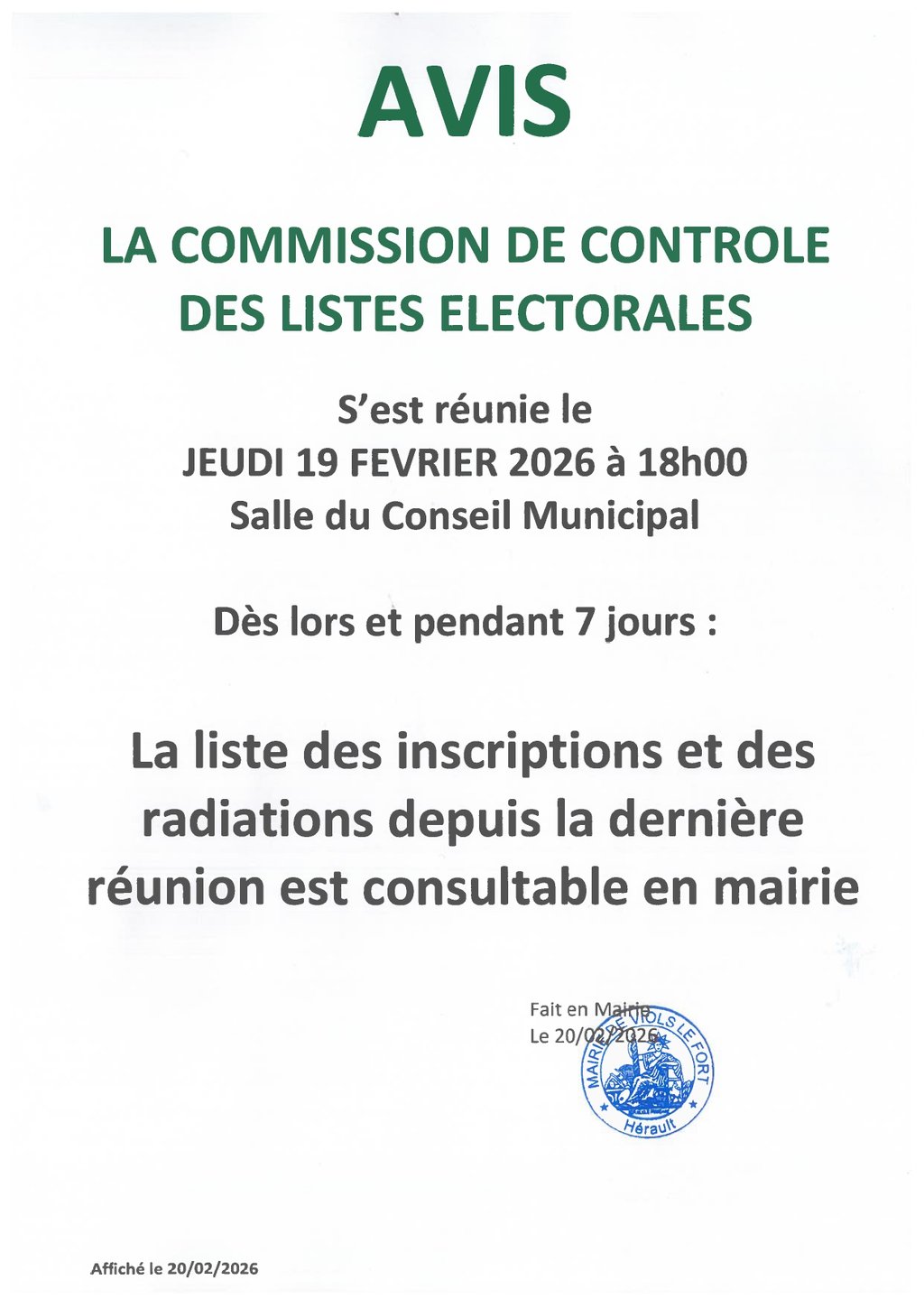 La Commission de Contrôle des Listes Électorales s'est réunie le jeudi 19 février 2026.