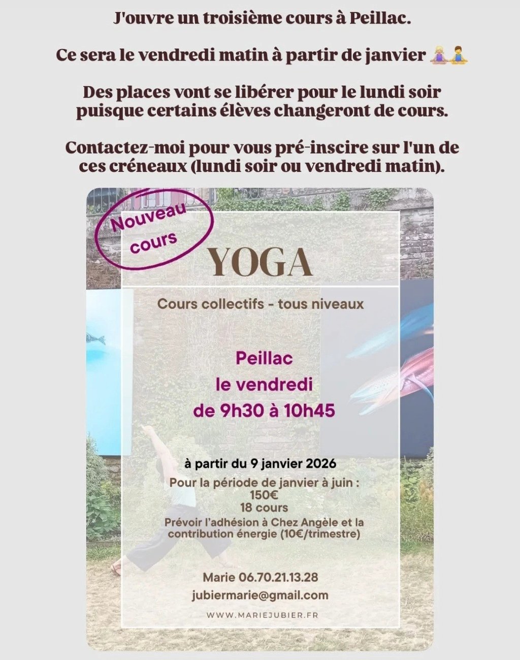 NOUVEAUX COURS DE YOGA Ă PEILLAC
