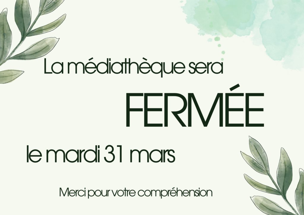 Exceptionnellement, la médiathèque sera fermée le mardi 31 mars.