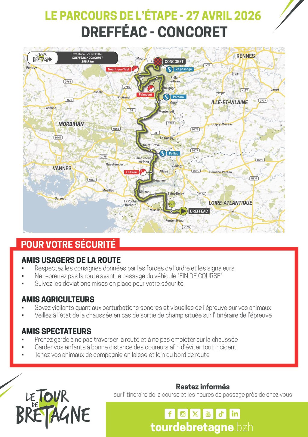 🚴‍♀️Le Tour de Bretagne Cycliste traversera Peillac le lundi 27 avril à l'occasion de la troisième étape entre Dréfféac et Concoret. 🚴‍♂️