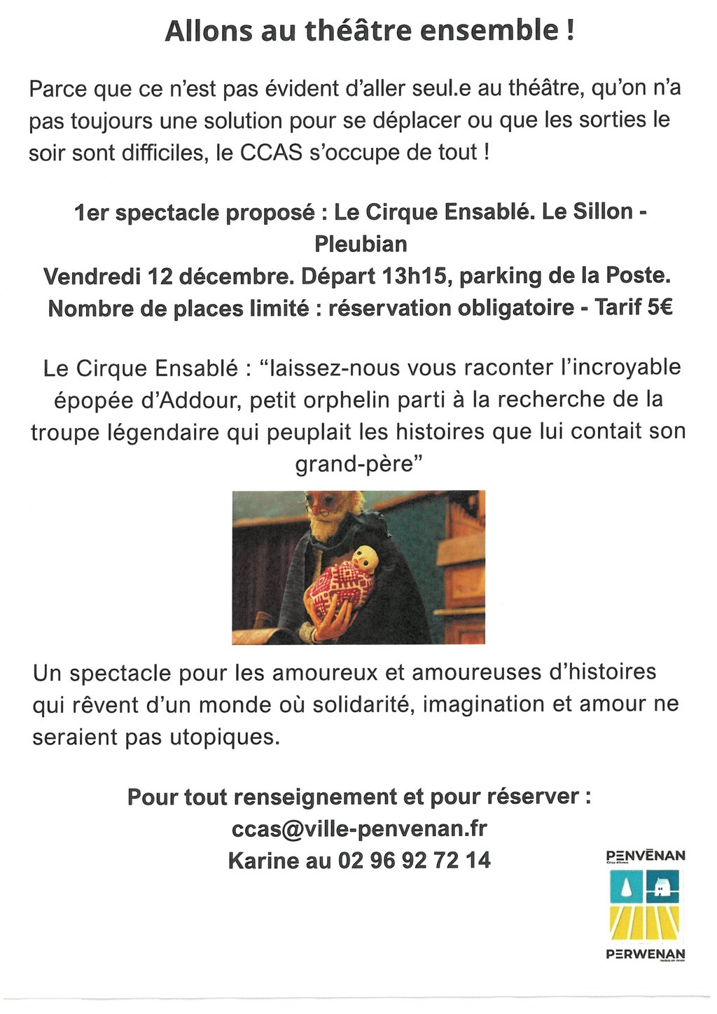 Nous vous proposons d'aller ensemble au théâtre du Sillon à Pleubian, vendredi 12 décembre voir Le Cirque Ensablé. Tarif : 5€