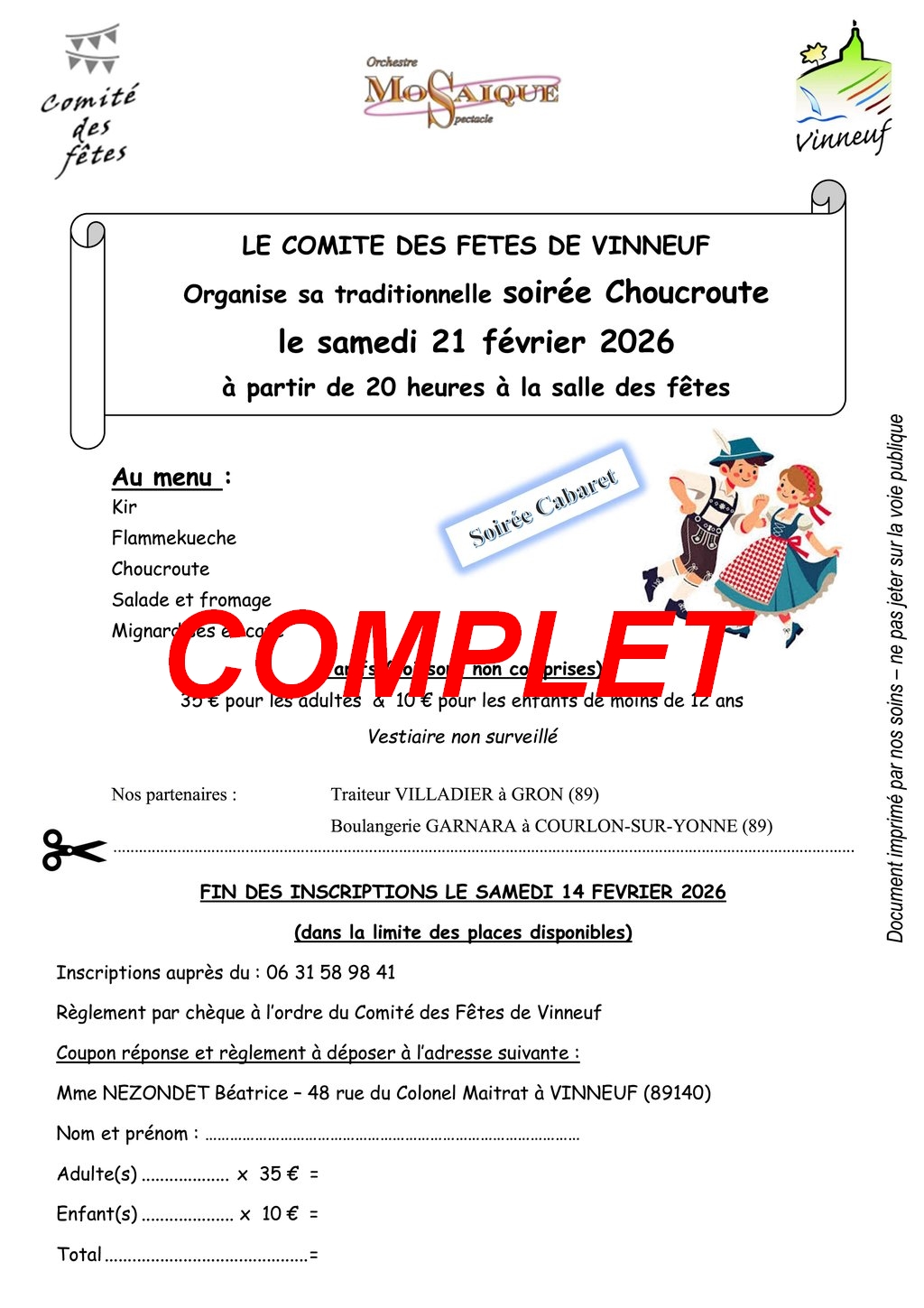 COMPLET : Soirée Choucroute du Comité des Fêtes